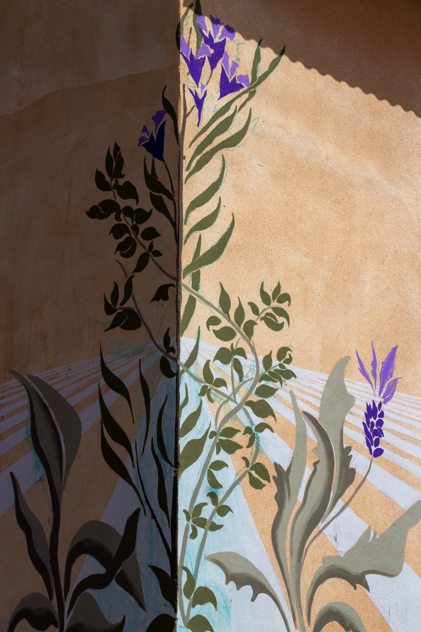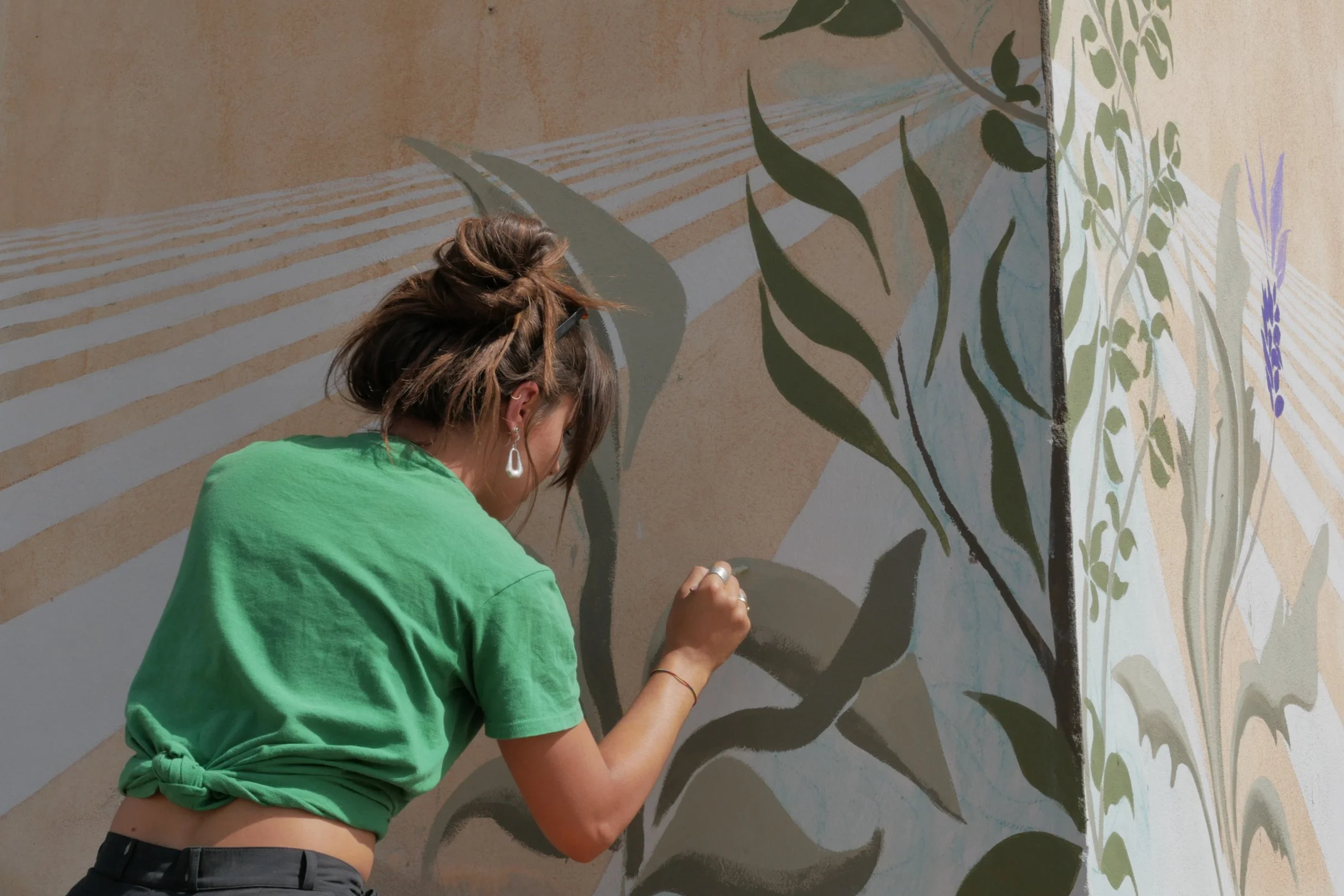 Murals have been around almost as long as mankind, but over time the techniques and functions have changed enormously. We took inspiration from the function that murals had in the early days of mankind. Several wall drawings have been found in ancient caves depicting various organisms including animals but also plants that occurred in that place at that time. We translate the aromatic fields growing in this landscape today. Perhaps aromatics will no longer grow here in the future, but it will still be possible to find out through this painting what once was there.